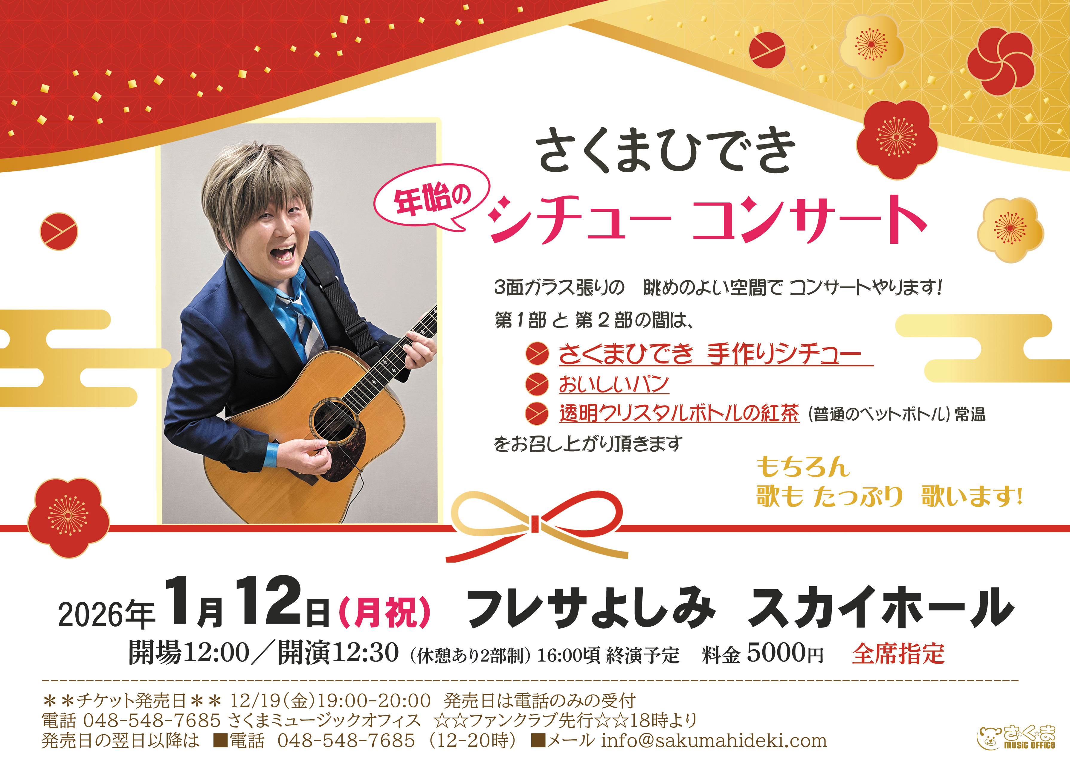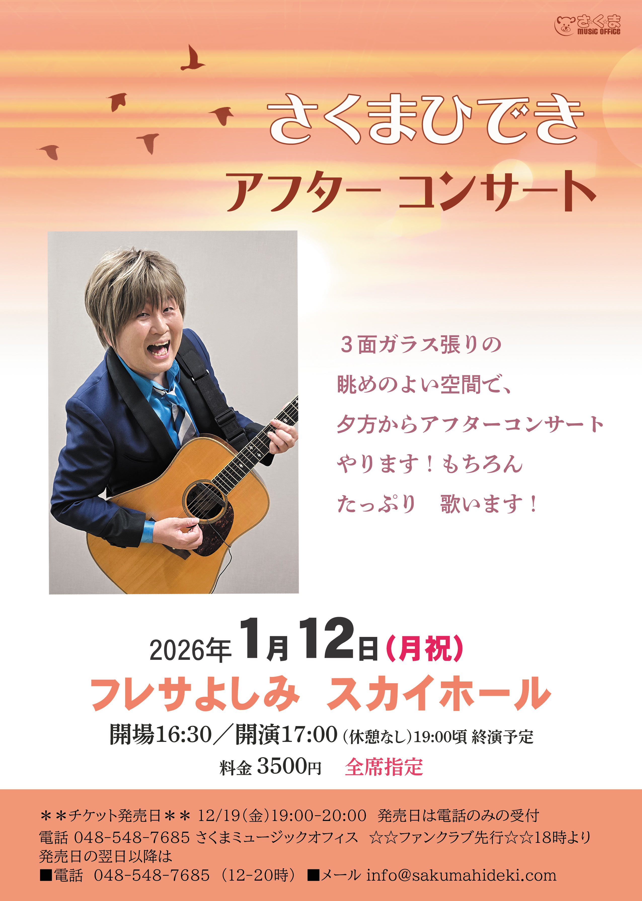 ※こちら公演のチケットは、さくまミュージックオフィスでのみ取り扱い 会場であるフレサよしみでは受け付けておりませんのでご注意ください