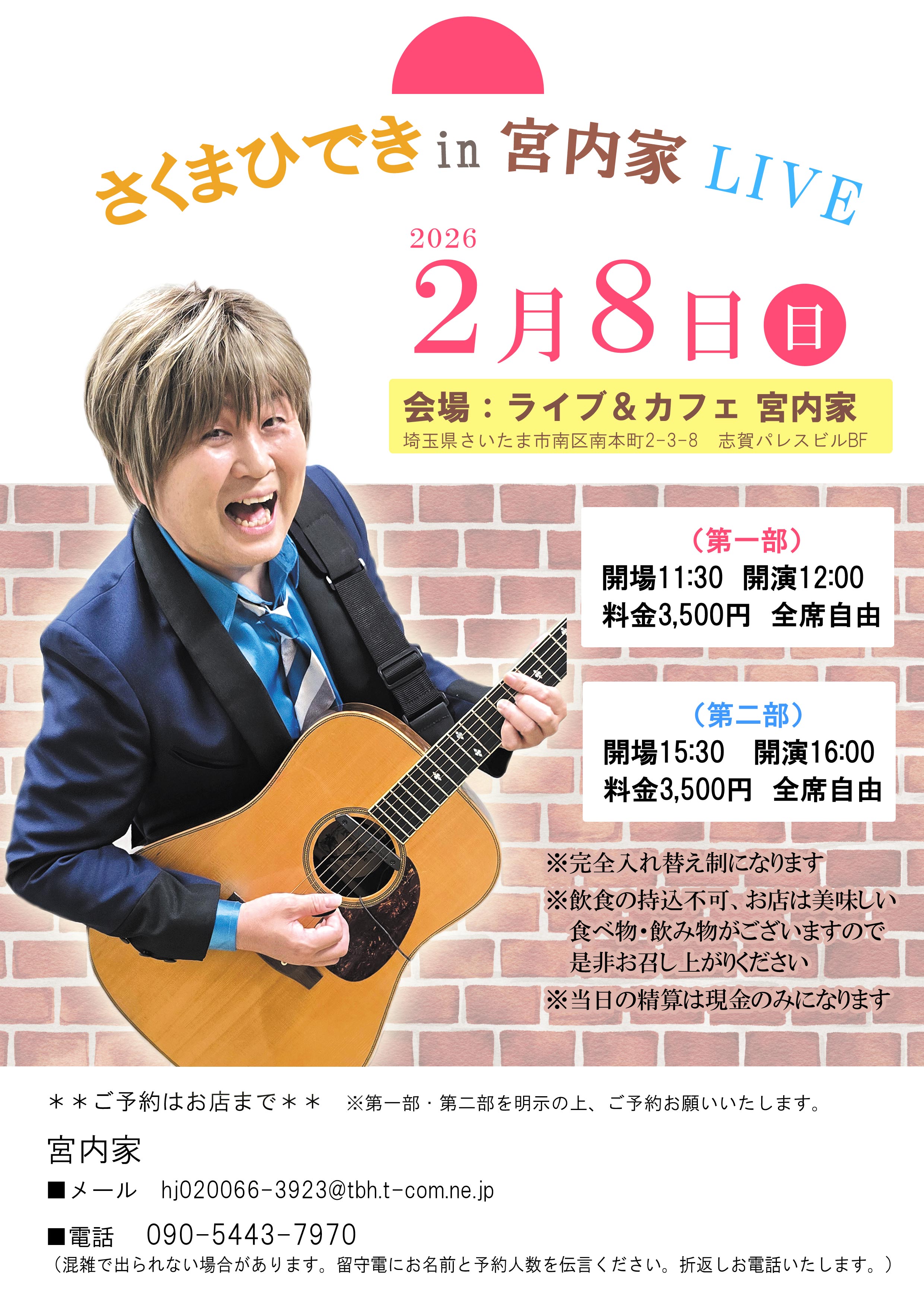 宮内家まで ※第一部・第二部を明示の上、ご予約お願いいたします。