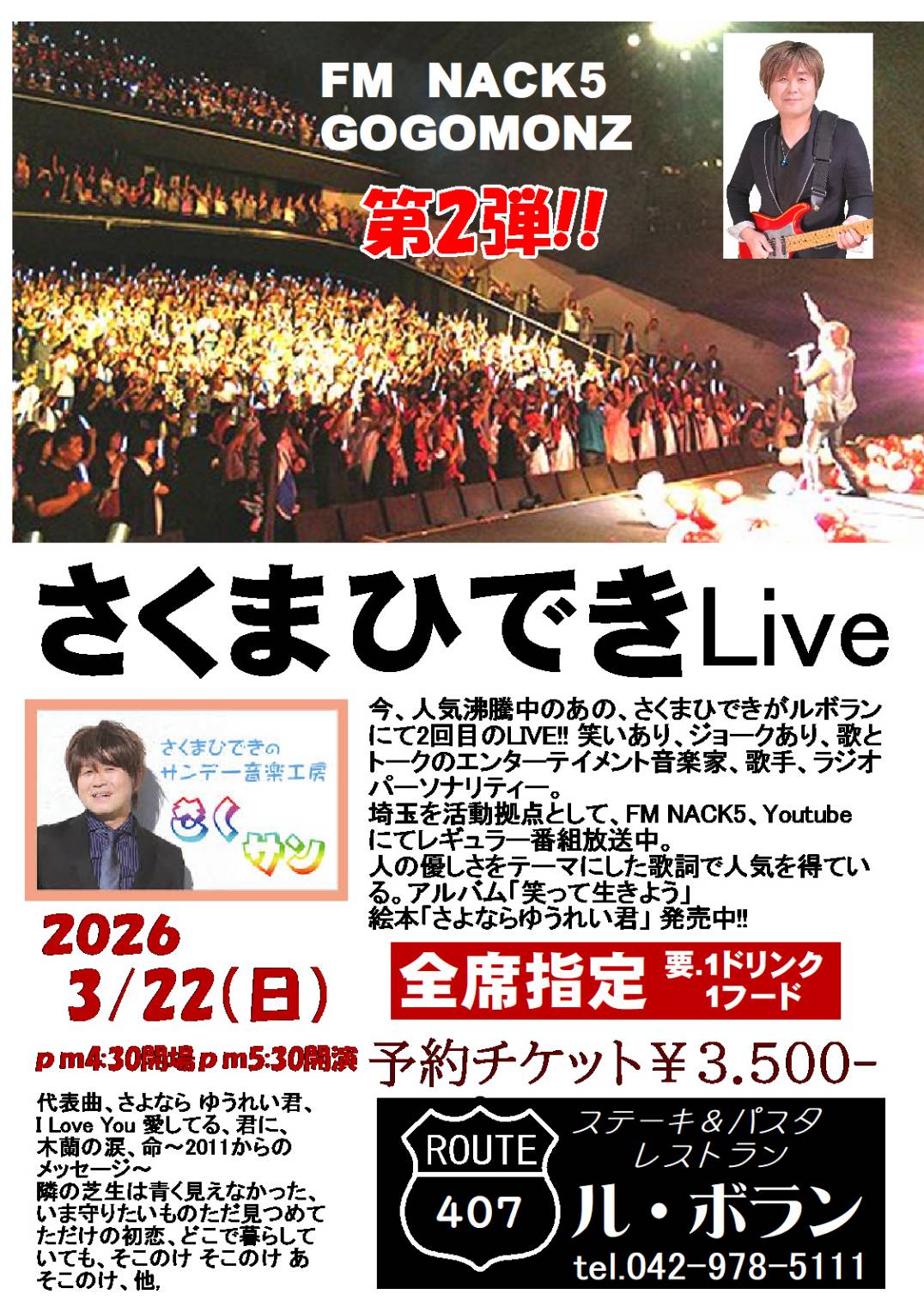 ※こちら公演のチケットは、さくまミュージックオフィスでのみ取り扱い 会場であるフレサよしみでは受け付けておりませんのでご注意ください